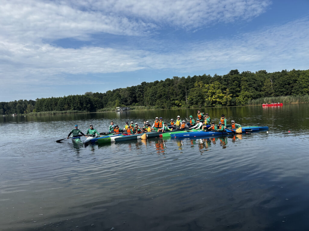 Am Vormittag haben wir eine lange Ausfahrt gemacht. Bei dem grünen Bungalow von Neo und Frau Luda werden die Bootskonstellationen uns vorgestellt, damit wir unsere Boote einstellen und dann uns Erwärmen können. Als Erwärmung und Boote Eingestellt waren, sind wir losgefahren. Die Ausfahrt war sehr schön und als wir wieder zurück kamen gab es direkt mittag. Wir haben das mit dem Schreiben ein bisschen verpennt deswegen wissen wir nicht mehr was es gab. Nach der Mittagspause sind wir Laufen gegangen beziehungsweise die die Knieprobleme haben Stabi & Kraft mit Carina. Nachdem wir Stabi & Lauf gemacht haben sind wir wieder in die Boote gestiegen und sind Strecken gefahren bzw. vor dem Steg geblieben und haben Canadier geübt. Dann gab es Abendbrot danach sind wir Duschen gegangen haben noch ein bisschen gespielt/gequatscht dann kam Carina und hat uns gute Nacht gesagt. Nach 20 minuten reden und Mückenzerklatschen mit Friedas schuhen ist Carina gegangen und wir sind langsam eingeschlafen.