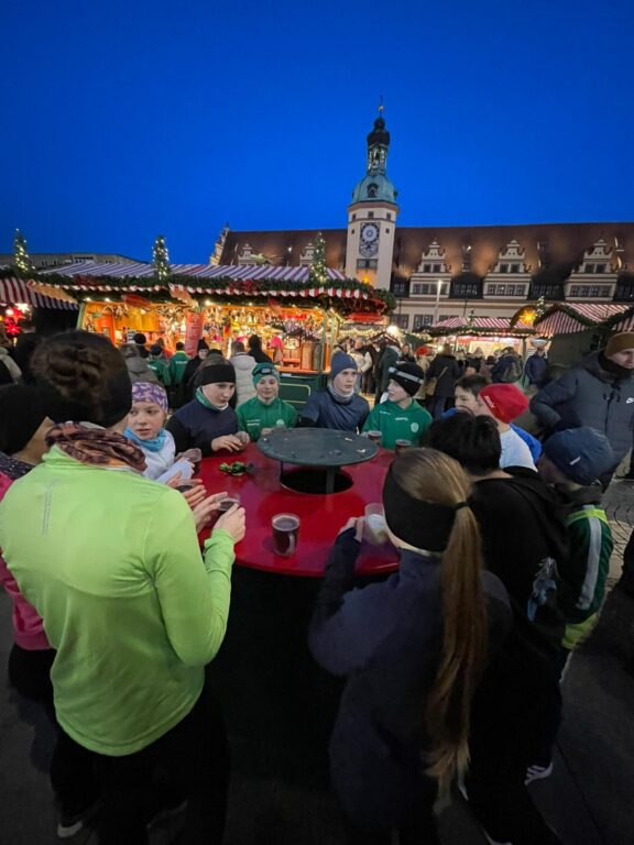 Für unsere Schüler:innen A stand heute ein ganz besonderes Lauftraining auf dem Plan. Gemeinsam ging es auf den Leipziger Weihnachtsmarkt um dort zusammen einen Punsch zu trinken. Also, Lauftraining muss nicht immer langweilig und monoton sein 😉. Man muss nur das richtige Ziel vor Augen haben!